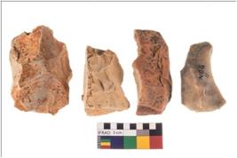 | Description / विवरण | Four flakes; most of them are tapering at one end with few having sharp edges. |