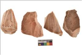 | Description / विवरण | Four worked utilised flakes with sharp edges. Most of them are tapering at one end. |
