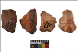 | Description / विवरण | Four worked utilised flakes with sharp edges. Most of them are tapering at one end. |