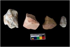 | Description / विवरण | There are n-4 of intact cores. Out of them 2 are made up Chalcedony and 2 are made up of Chert.There are multi directional irregular dominant scar pattern on both dorsal and ventral face of the cores. |