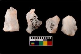 | Description / विवरण | Four worked nodules from which blades removed from few sides. |