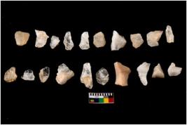 | Description / विवरण | Specimen of flakes tool with prominent flaking marks. Some are pointed and tapering at one end. |