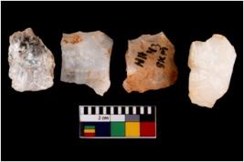 | Description / विवरण | Four worked nodules from which blades removed from few sides. |