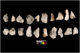 | Description / विवरण | Specimen of flakes tool with prominent flaking marks. Some are pointed and tapering at one end. |