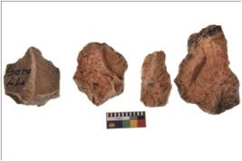 | Description / विवरण | Four worked flakes with sharp edges. Some of them are tapering at one end. |