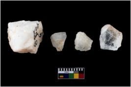 | Description / विवरण | A specimen of a fluted core having several broad fluted marks indicating the detached blades from it. |