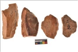| Description / विवरण | Four worked flakes with sharp edges. Some of them are tapering at one end. |