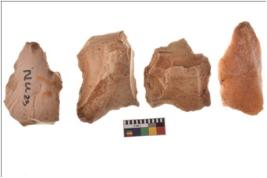 | Description / विवरण | Four worked flakes with sharp edges. Some of them are tapering at one end. |
