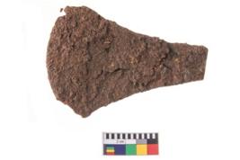 | Description / विवरण | A frontal part of an adze which is highly corroded and flaking from almost all the sides. |
