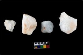 | Description / विवरण | A specimen of a fluted core having several broad fluted marks indicating the detached blades from it. |