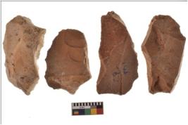 | Description / विवरण | Four worked flakes with sharp edges. Some of them are tapering at one end. |