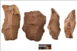 | Description / विवरण | Four worked flakes with sharp edges. Some of them are tapering at one end. |