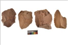 | Description / विवरण | Four worked flakes with sharp edges. Some of them are tapering at one end. |