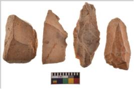 | Description / विवरण | Four worked flakes with sharp edges. Some of them are tapering at one end. |