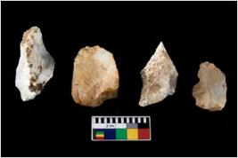 | Description / विवरण | There are n-4 of intact cores. Out of them 3 are made up Chalcedony and 1 is made up of Agate.There are multidirectional irregular dominant scar pattern on both dorsal and ventral face of the cores. |