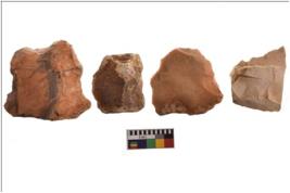 | Description / विवरण | Four worked flakes with sharp edges. Some of them are tapering at one end. |