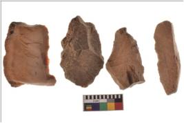 | Description / विवरण | Four worked flakes with sharp edges. Some of them are tapering at one end. |