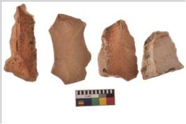 | Description / विवरण | Four worked flakes with sharp edges. Some of them are tapering at one end. |