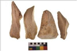 | Description / विवरण | Four worked flakes with sharp edges. Some of them are tapering at one end. |