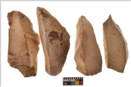 | Description / विवरण | Four worked flakes with sharp edges. Some of them are tapering at one end. |