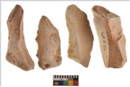 | Description / विवरण | Four worked flakes with sharp edges. Some of them are tapering at one end. |