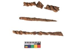 | Description / विवरण | A corroded spiral nail broken in three parts and a plain nail with a sharp point at one end. |