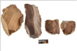 | Description / विवरण | Four worked flakes with sharp edges. Some of them are tapering at one end. |