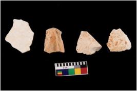 | Description / विवरण | Four flakes; most of them are tapering at one end with few sharp edges. |