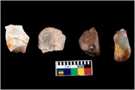 | Description / विवरण | There are n-4 of intact cores made up of Chalcedony.There are multidirectional irregular dominant scar pattern on both dorsal and ventral face of the cores. |