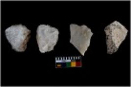 | Description / विवरण | Specimen of fluted cores having several broad fluted marks indicating the detached blades from it. |