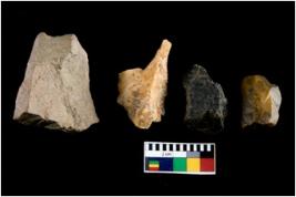 | Description / विवरण | There are n-4 of intact cores. Out of them 2 are made up Chalcedony and 2 are made up of Chert.There are multi directional irregular dominant scar pattern on both dorsal and ventral face of the cores. |