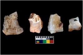 | Description / विवरण | There are n-4 of intact cores made up of Chalcedony.There are multidirectional irregular dominant scar pattern on both dorsal and ventral face of the cores. |