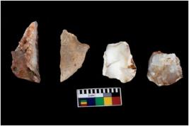 | Description / विवरण | There are n-4 of intact cores. Out of them 3 are made up Chalcedony and 1 is made up of Chert.There are multidirectional irregular dominant scar pattern on both dorsal and ventral face of the cores. |