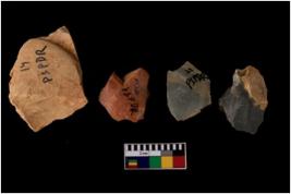 | Description / विवरण | Four worked flakes with sharp edges. Some of them are tapering at one end. |