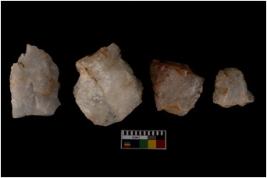 | Description / विवरण | Four worked flakes with sharp edges. Some of them are tapering at one end. |