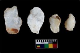 | Description / विवरण | There are n-4 of intact cores. Out of them 3 are made up Chalcedony and 1 is made up of Chert.There are multidirectional irregular dominant scar pattern on both dorsal and ventral face of the cores. |