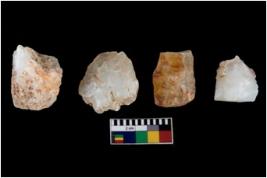 | Description / विवरण | There are n-4 of intact cores made up of Chalcedony.There are multidirectional irregular dominant scar pattern on both dorsal and ventral face of the cores. |