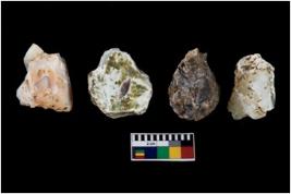 | Description / विवरण | There are n-4 of intact cores. Out of them 3 are made up Chalcedony and 1 is made up of Chert.There are multidirectional irregular dominant scar pattern on both dorsal and ventral face of the cores. |