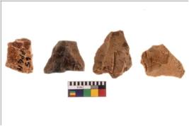| Description / विवरण | Four worked flakes with sharp edges. Some of them are tapering at one end. |