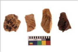 | Description / विवरण | Four worked flakes with sharp edges. Some of them are tapering at one end. |