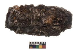 | Description / विवरण | A fragment of iron blade,triangular in shape.it s body has thin sharp blade edge on one side and thick blunt edge on the other side. |