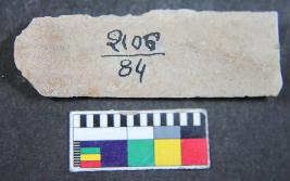 | Description / विवरण | Parallel sided slightly cruve chert blade with having two dorsal ridges. |