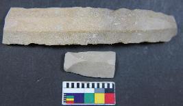 | Description / विवरण | Parallel sided chert blades with positive bulb of percussion on the ventral. Retouching are present and having two dorsal ridge. |