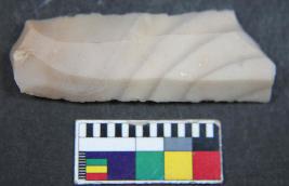 | Description / विवरण | Parallel sided chert blade with positive bulb of percussion on the ventral. Retouching are present and having two dorsal ridge. |