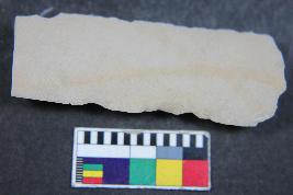 | Description / विवरण | Parallel sided chert blade with having two dorsal ridges. |