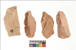 | Description / विवरण | Four flakes; most of them are tapering at one end with few having sharp edges. |