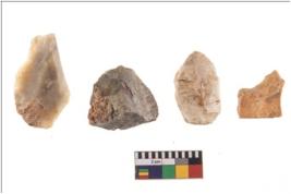 | Description / विवरण | Four flakes; most of them are tapering at one end with few having sharp edges. |