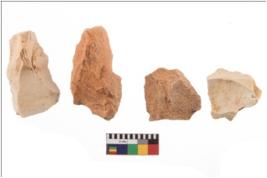 | Description / विवरण | Four flakes; most of them are tapering at one end with few having sharp edges. |