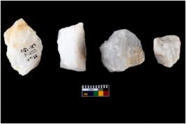 | Description / विवरण | A specimen of a fluted core having very few fluted marks before removing of blades form it. It is roughly rounded in shape and white in colour. |