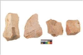 | Description / विवरण | Four flakes; most of them are tapering at one end with few having sharp edges. |